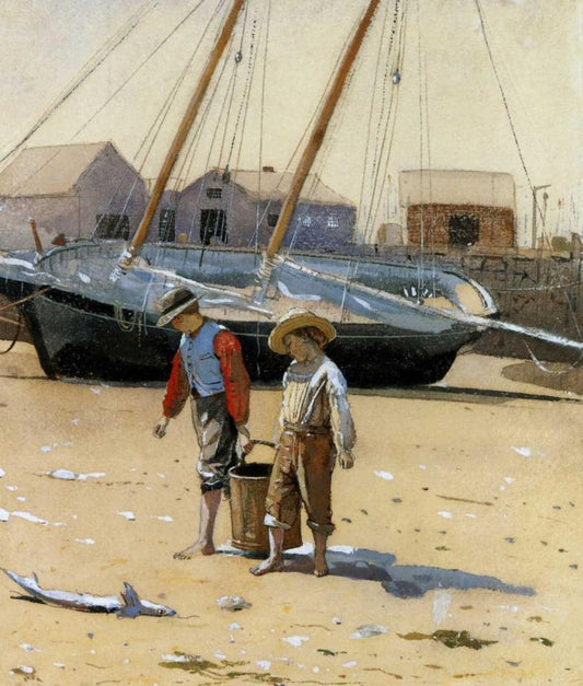 The Basket Of Clams 1873 White Modern Wood Framed Art Print with Double Matting by Homer, Winslow