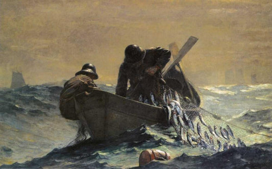 The Herring Net White Modern Wood Framed Art Print with Double Matting by Homer, Winslow