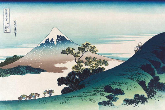 Inumi Pass in the Kai Province, 1830 White Modern Wood Framed Art Print with Double Matting by Hokusai