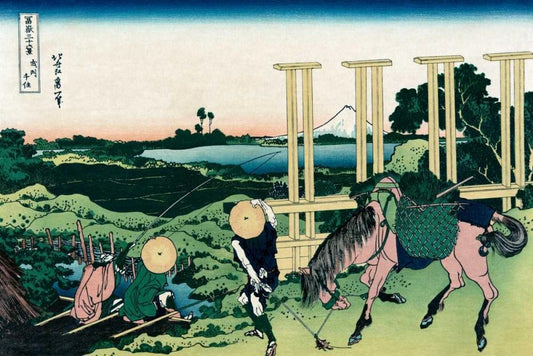 Senju in Musashi Province, 1830 White Modern Wood Framed Art Print with Double Matting by Hokusai
