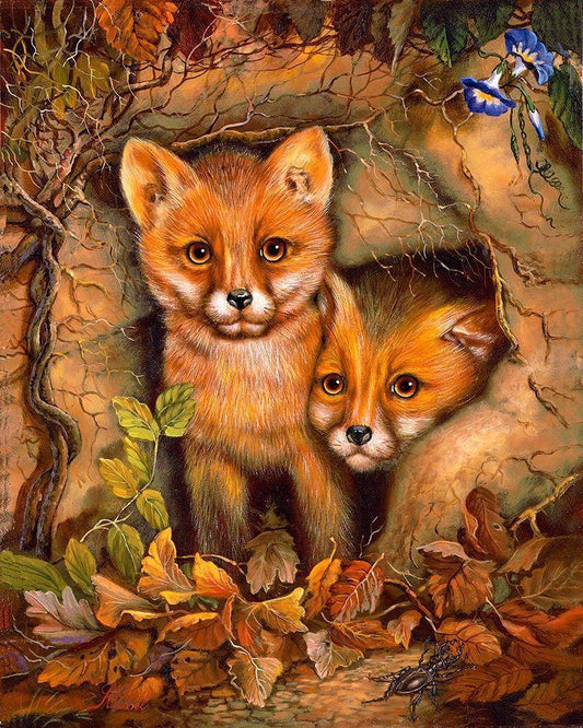Fox Cubs White Modern Wood Framed Art Print with Double Matting by Strubel, Klaus