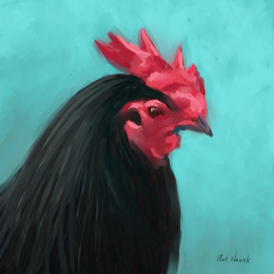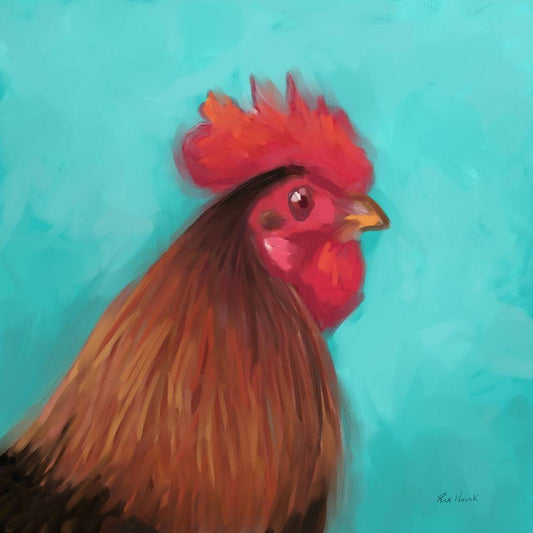 Rooster I White Modern Wood Framed Art Print with Double Matting by Novak, Rick