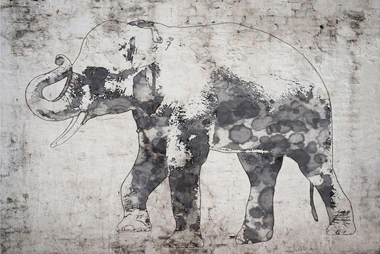 Rustic Elephant I White Modern Wood Framed Art Print with Double Matting by Orlov, Irena