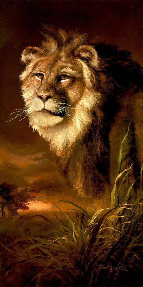 The Pride of Africa White Modern Wood Framed Art Print with Double Matting by Lee, James