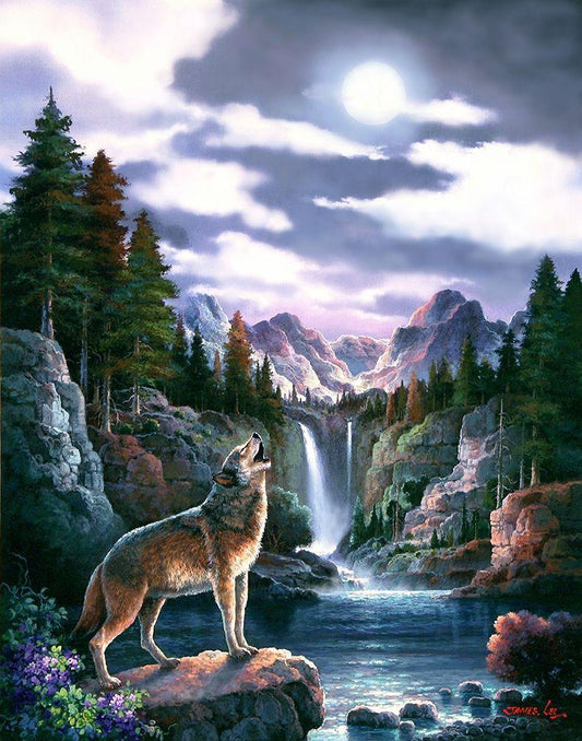 Wolf Moon White Modern Wood Framed Art Print with Double Matting by Lee, James