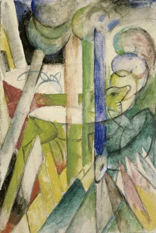 Horses Out To Pasture White Modern Wood Framed Art Print with Double Matting by Marc, Franz