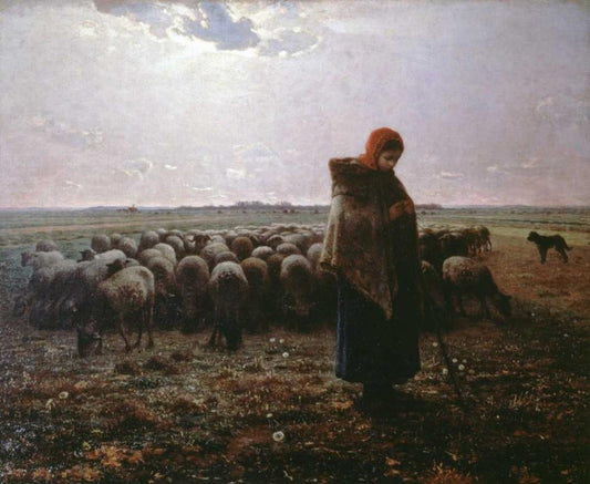 Pasture White Modern Wood Framed Art Print with Double Matting by Millet, Jean-Francois