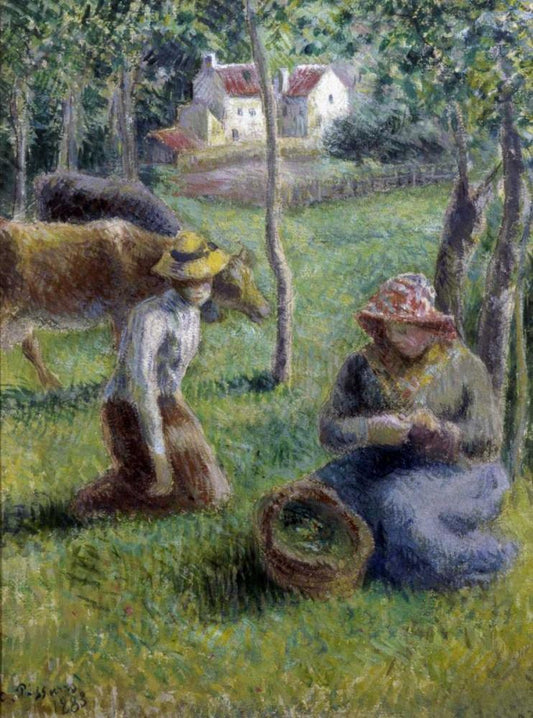 The Cowherd - La Vachere White Modern Wood Framed Art Print with Double Matting by Pissarro, Camille