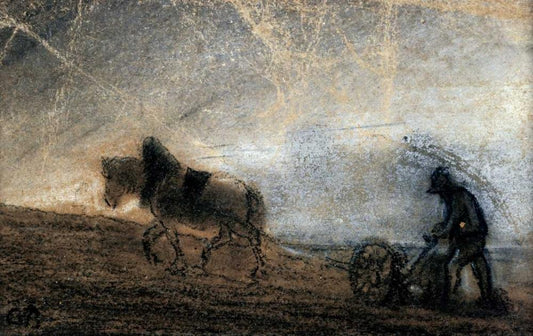 Plowman White Modern Wood Framed Art Print with Double Matting by Pissarro, Camille