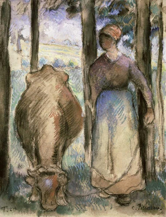 Keeper of the Cows White Modern Wood Framed Art Print with Double Matting by Pissarro, Camille