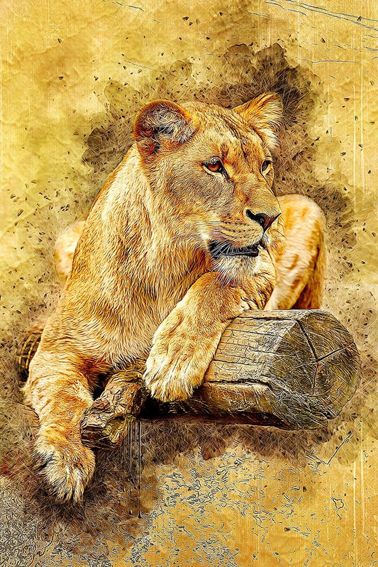 Lioness White Modern Wood Framed Art Print with Double Matting by Alpenglow Workshop