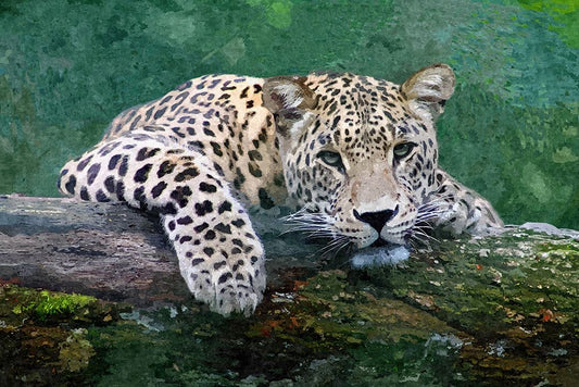 Leopard Zoo White Modern Wood Framed Art Print with Double Matting by Vintage Travel Posters