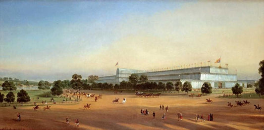 Crystal Palace During The Great Exhibition of 1851 White Modern Wood Framed Art Print with Double Matting by Le Bihan, P.