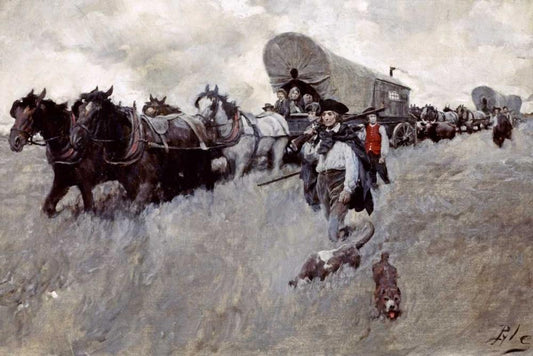 The Connecticut Settlers Entering The Western Reserve White Modern Wood Framed Art Print with Double Matting by Pyle, Howard