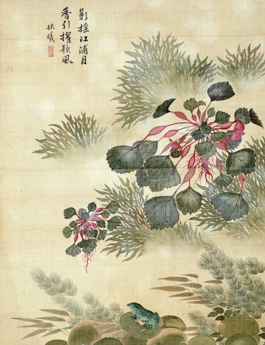 Water Caktrios and Frog White Modern Wood Framed Art Print with Double Matting by Yuanyu, Ma