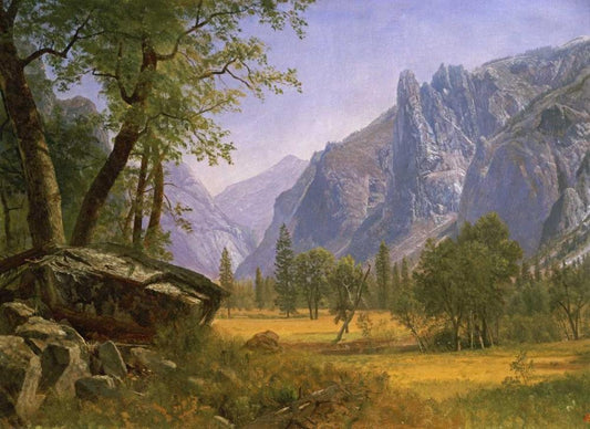 Yosemite Valley White Modern Wood Framed Art Print with Double Matting by Bierstadt, Albert