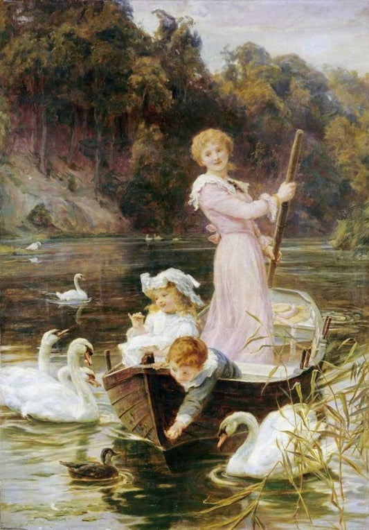 A Day On The River White Modern Wood Framed Art Print with Double Matting by Morgan, Frederick