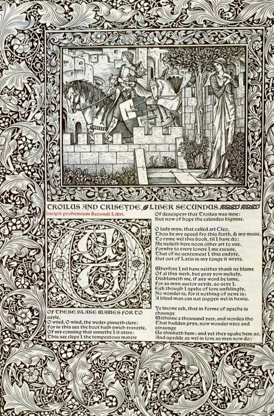 Troilus and Criseyde, Liber Secundus White Modern Wood Framed Art Print with Double Matting by Morris, William