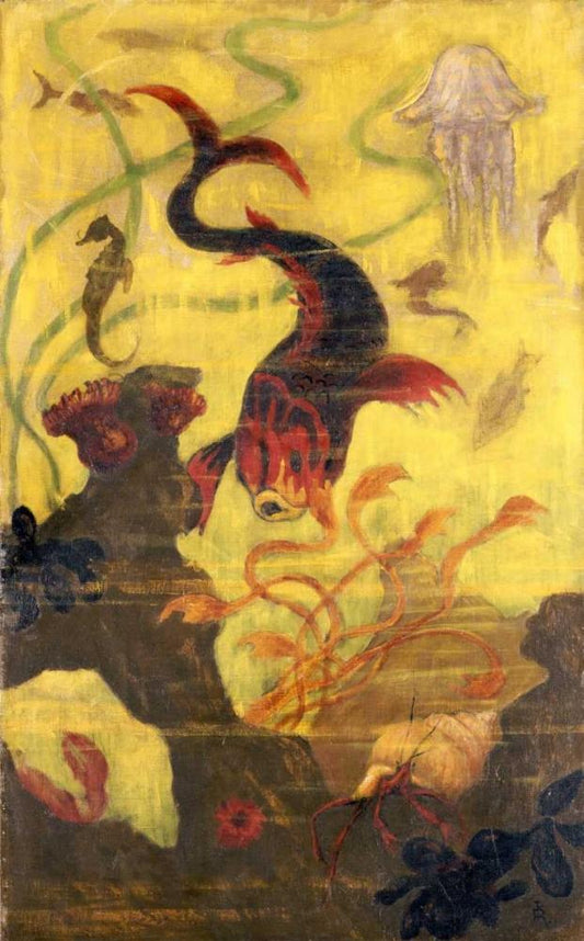 Poissons Et Crustacaes White Modern Wood Framed Art Print with Double Matting by Ranson, Paul