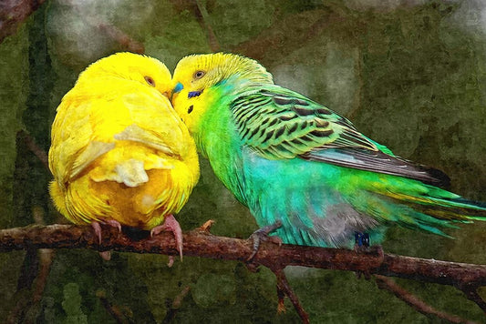 Budgie Snuggles White Modern Wood Framed Art Print with Double Matting by Alpenglow Workshop