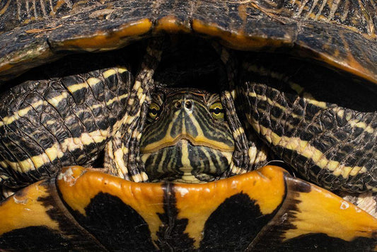 Red-eared Slider Turtle in San Antonio-Texas White Modern Wood Framed Art Print with Double Matting by Cheung, Lance