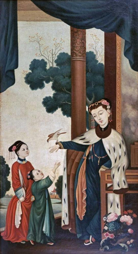 A Mandarins Wife With Their Two Daughters White Modern Wood Framed Art Print with Double Matting by Chinese School