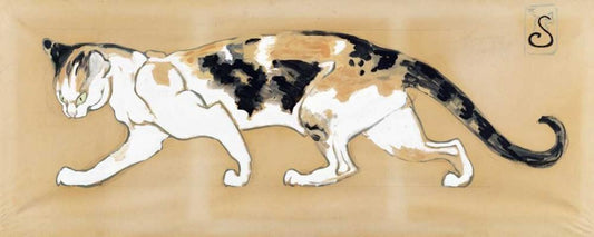 The Cat White Modern Wood Framed Art Print with Double Matting by Steinlen, Theophile