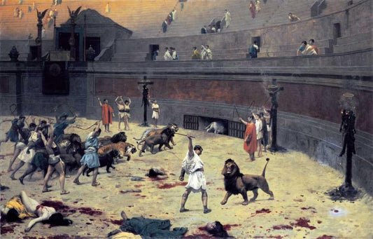 The Reentry of the Lions Into The Arena White Modern Wood Framed Art Print with Double Matting by Gerome, Jean Leon