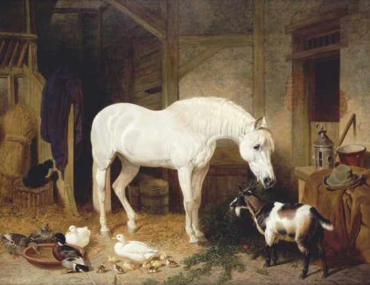 Stable Companions White Modern Wood Framed Art Print with Double Matting by Herring, John Frederick