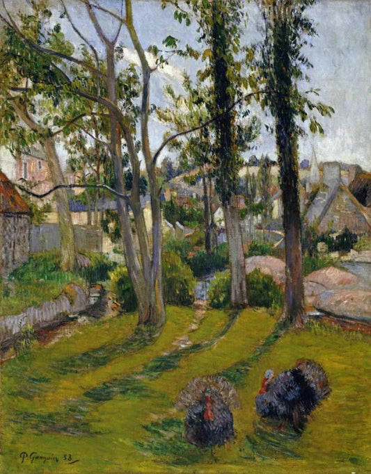 Les Dindons - Pont Aven Landscape, 1888 White Modern Wood Framed Art Print with Double Matting by Gauguin, Paul