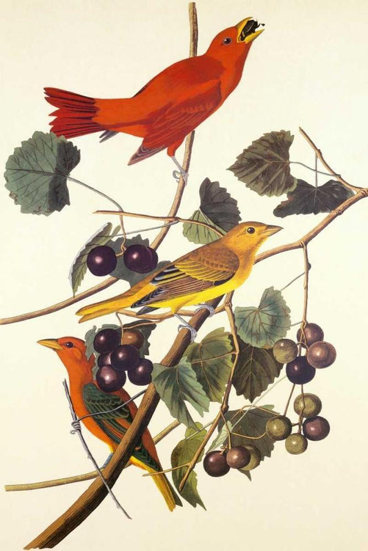 Summer Red Bird White Modern Wood Framed Art Print with Double Matting by Audubon, John James