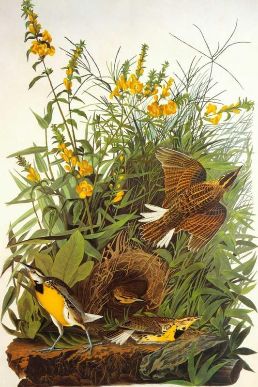 Meadow Lark White Modern Wood Framed Art Print with Double Matting by Audubon, John James