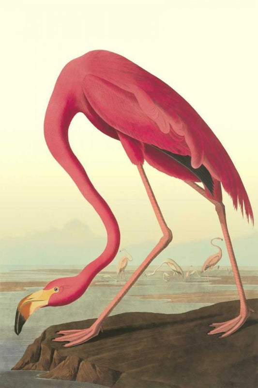 American Flamingo White Modern Wood Framed Art Print with Double Matting by Audubon, John James