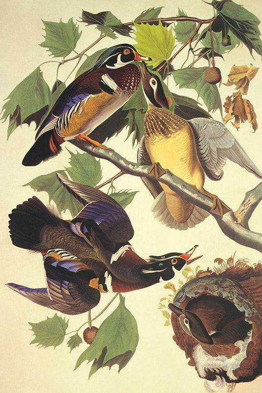 Summer Or Wood Duck White Modern Wood Framed Art Print with Double Matting by Audubon, John James