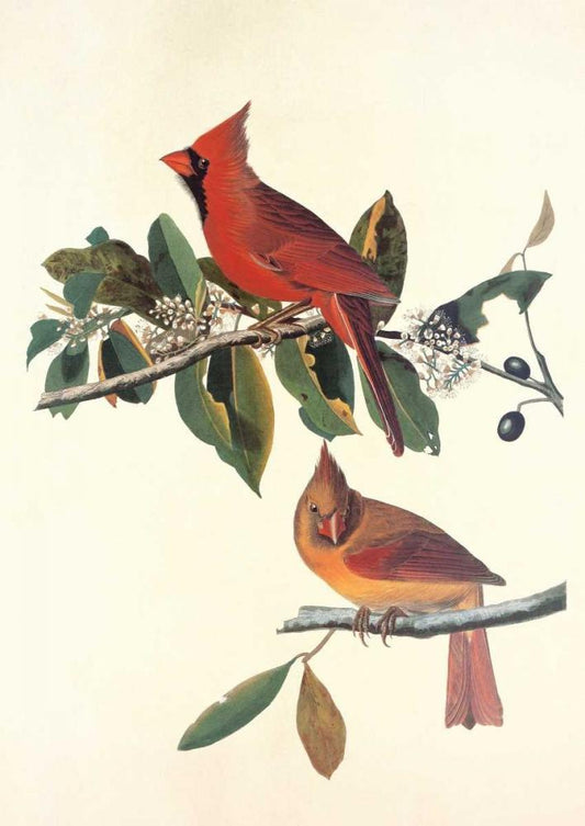 Cardinal Grosbeak White Modern Wood Framed Art Print with Double Matting by Audubon, John James