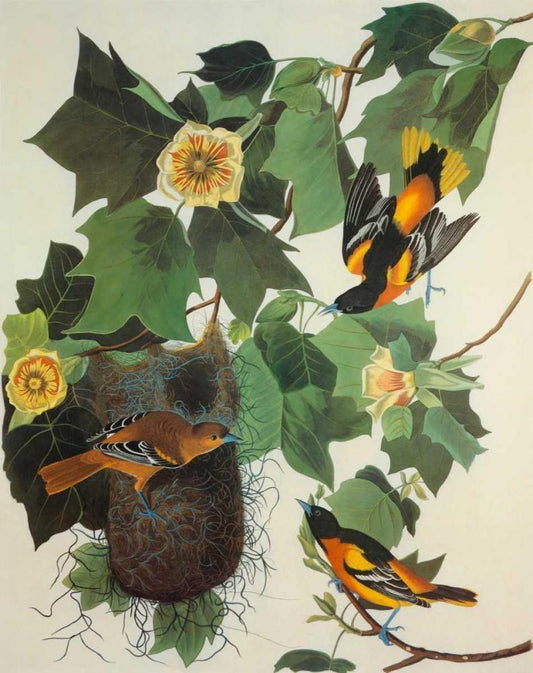 Baltimore Oriole White Modern Wood Framed Art Print with Double Matting by Audubon, John James
