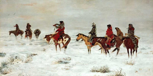 Lost In A Snowstorm - We Are Friends White Modern Wood Framed Art Print with Double Matting by Russell, Charles M.