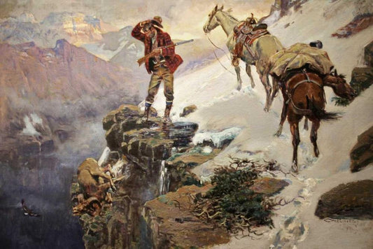 Carsons Men White Modern Wood Framed Art Print with Double Matting by Russell, Charles M.