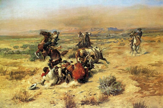 A Bad One White Modern Wood Framed Art Print with Double Matting by Russell, Charles M.