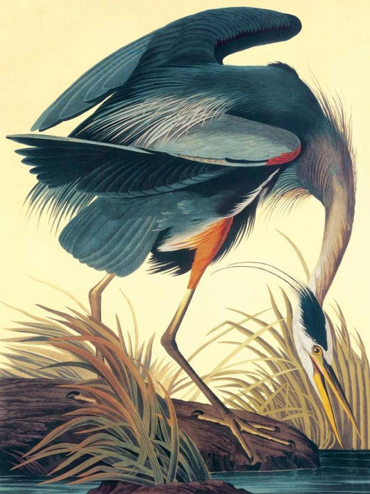 Great Blue Heron White Modern Wood Framed Art Print with Double Matting by Audubon, John James