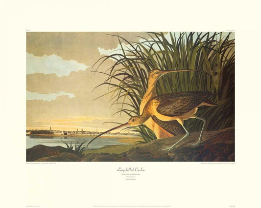 Long-Billed Curlew (decorative border) White Modern Wood Framed Art Print with Double Matting by Audubon, John James