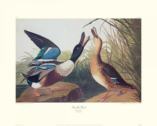 Shoveller Duck (decorative border) White Modern Wood Framed Art Print with Double Matting by Audubon, John James