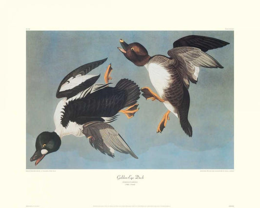 Golden-Eye Duck (decorative border) White Modern Wood Framed Art Print with Double Matting by Audubon, John James