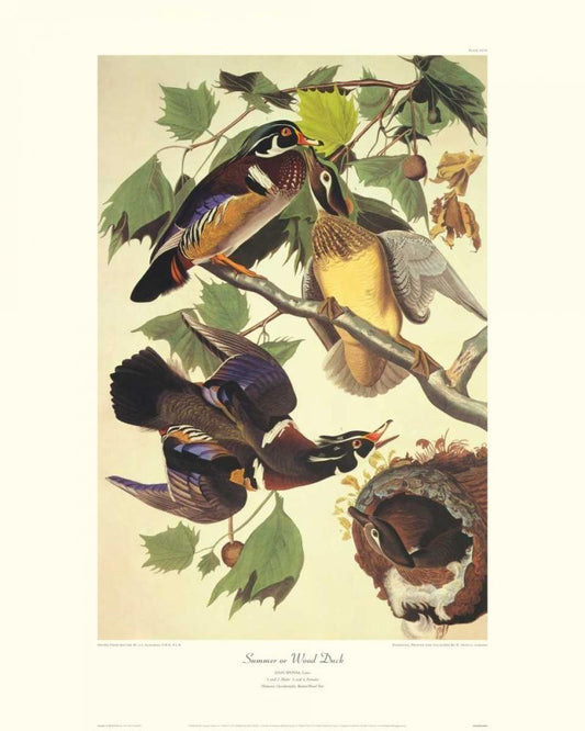 Summer Or Wood Duck (decorative border) White Modern Wood Framed Art Print with Double Matting by Audubon, John James