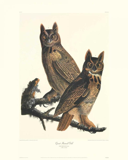 Great Horned Owl (decorative border) White Modern Wood Framed Art Print with Double Matting by Audubon, John James