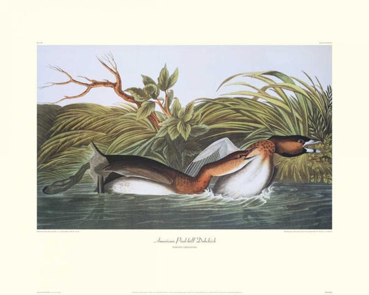 American Pied-Bill Dobchick (decorative border) White Modern Wood Framed Art Print with Double Matting by Audubon, John James