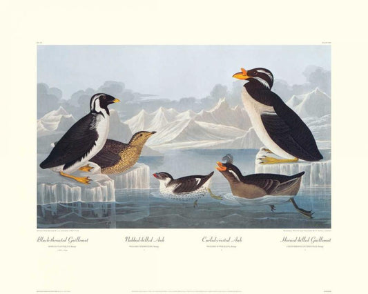 Black-throated Guillemot and Nobbed-billed Auk (decorative border) White Modern Wood Framed Art Print with Double Matting by Audubon, John James