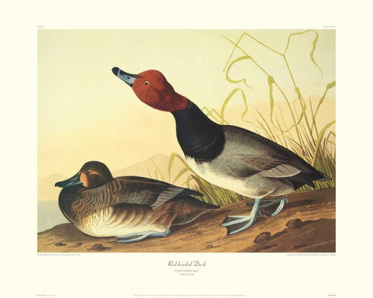 Red-Headed Duck (decorative border) White Modern Wood Framed Art Print with Double Matting by Audubon, John James