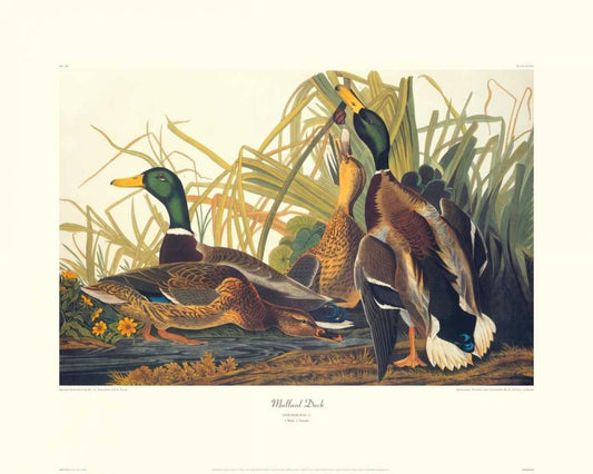 Mallard Duck (decorative border) White Modern Wood Framed Art Print with Double Matting by Audubon, John James