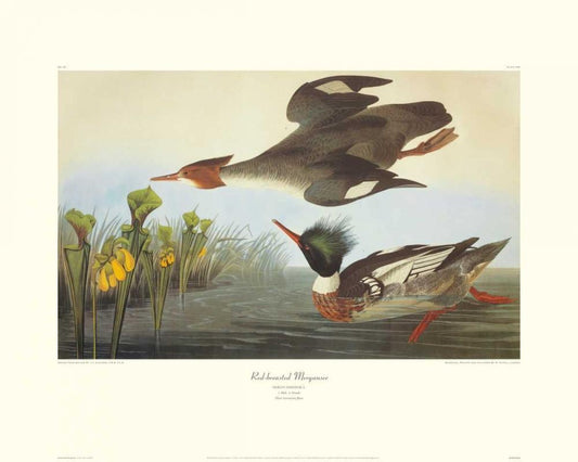 Red-Breasted Merganser (decorative border) White Modern Wood Framed Art Print with Double Matting by Audubon, John James